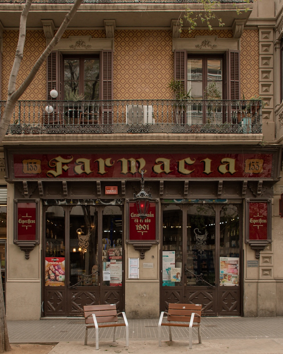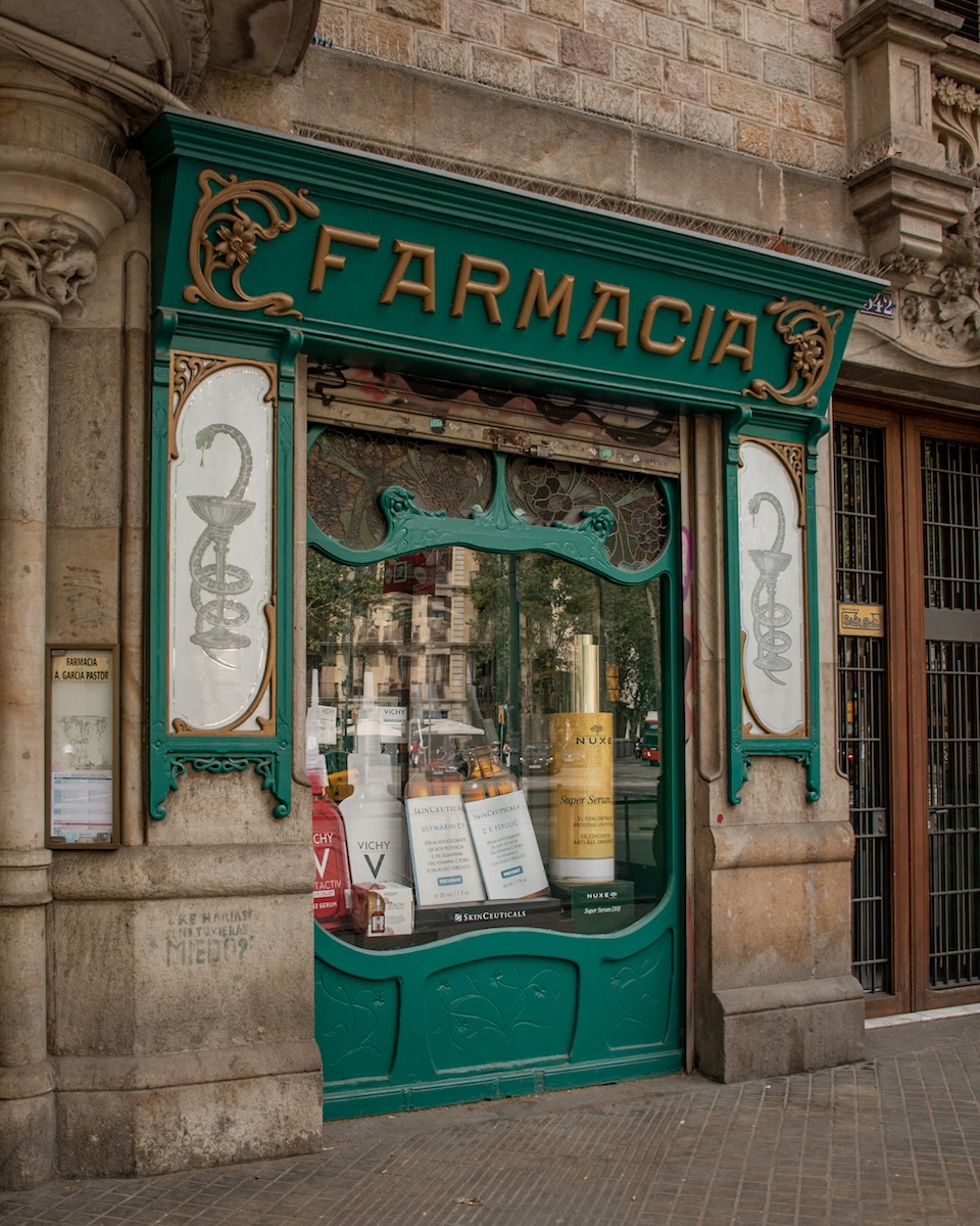 Barcelona’s pharmacies are not just places to pick up essentials; they are works of art. Don’t miss the opportunity to admire their stunning facades while wandering through the city. You can find my favourites below: